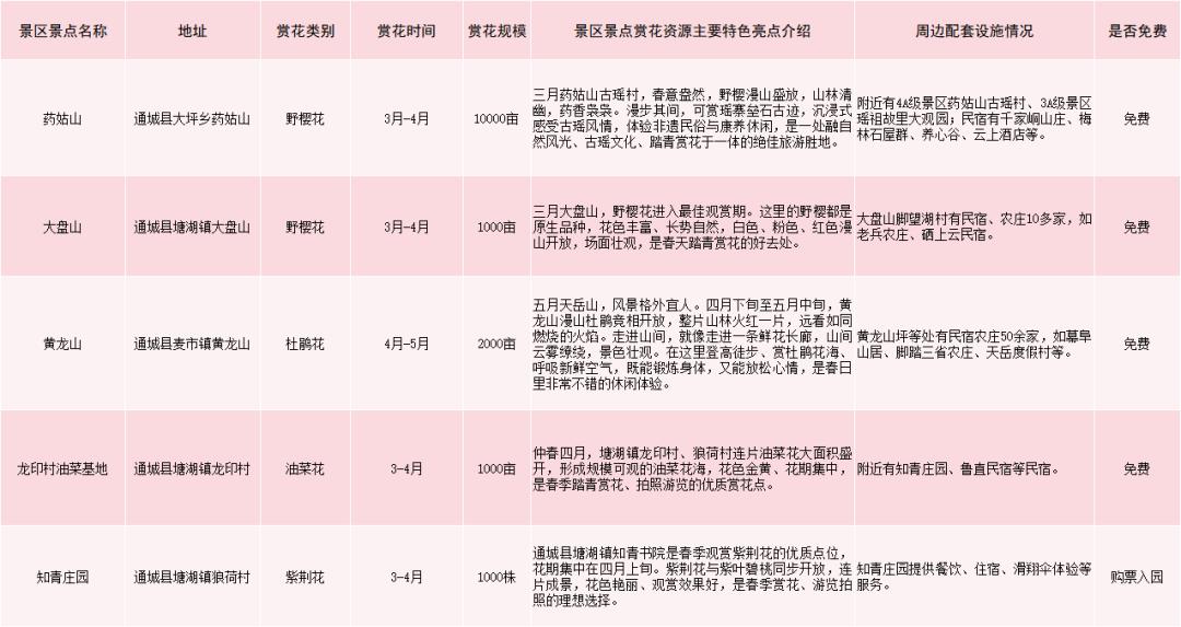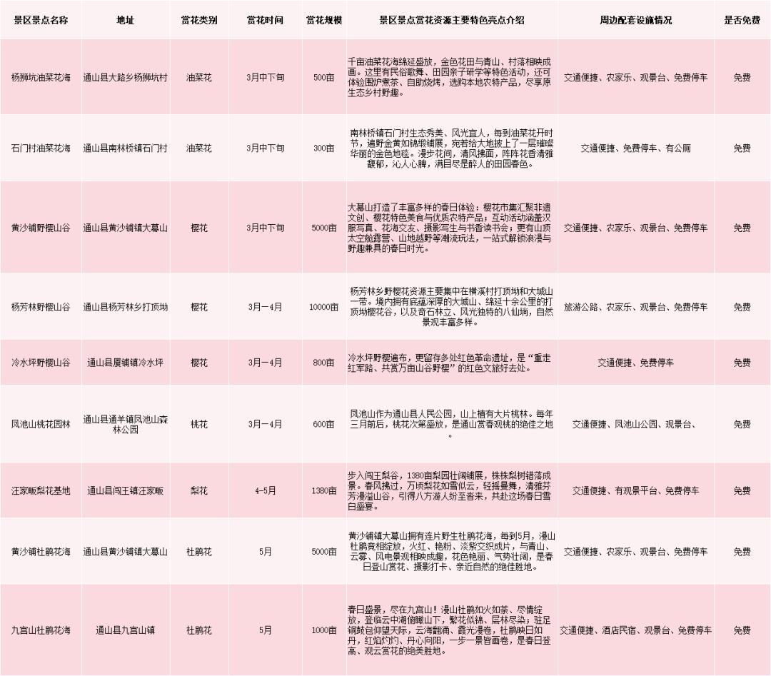 通山县赏花游景区景点一览表