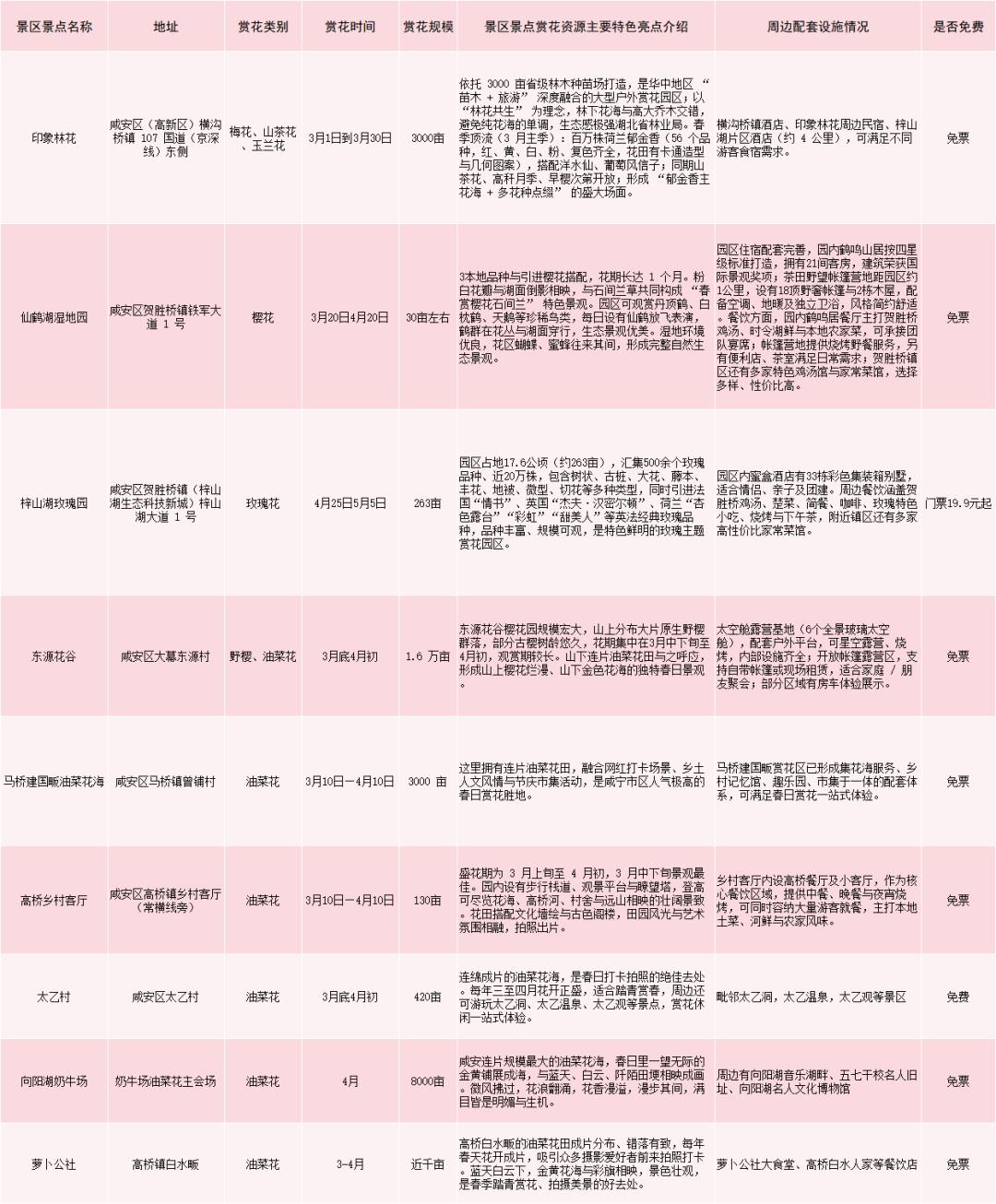 咸安区赏花游景区景点一览表