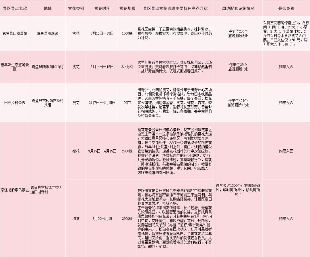 嘉鱼县赏花游景区景点一览表