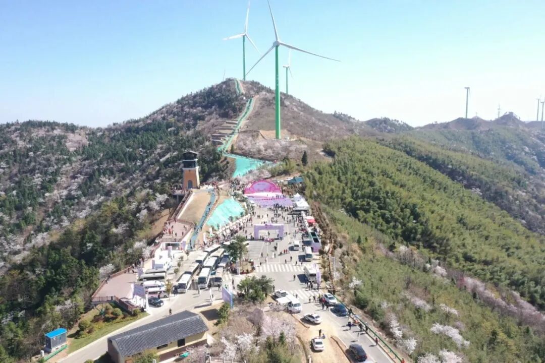 赏万亩樱花。设置樱花主题拱门、签到墙,安排“樱花公子寻山”“仙子巡游”等互动活动,设置步道打卡点。