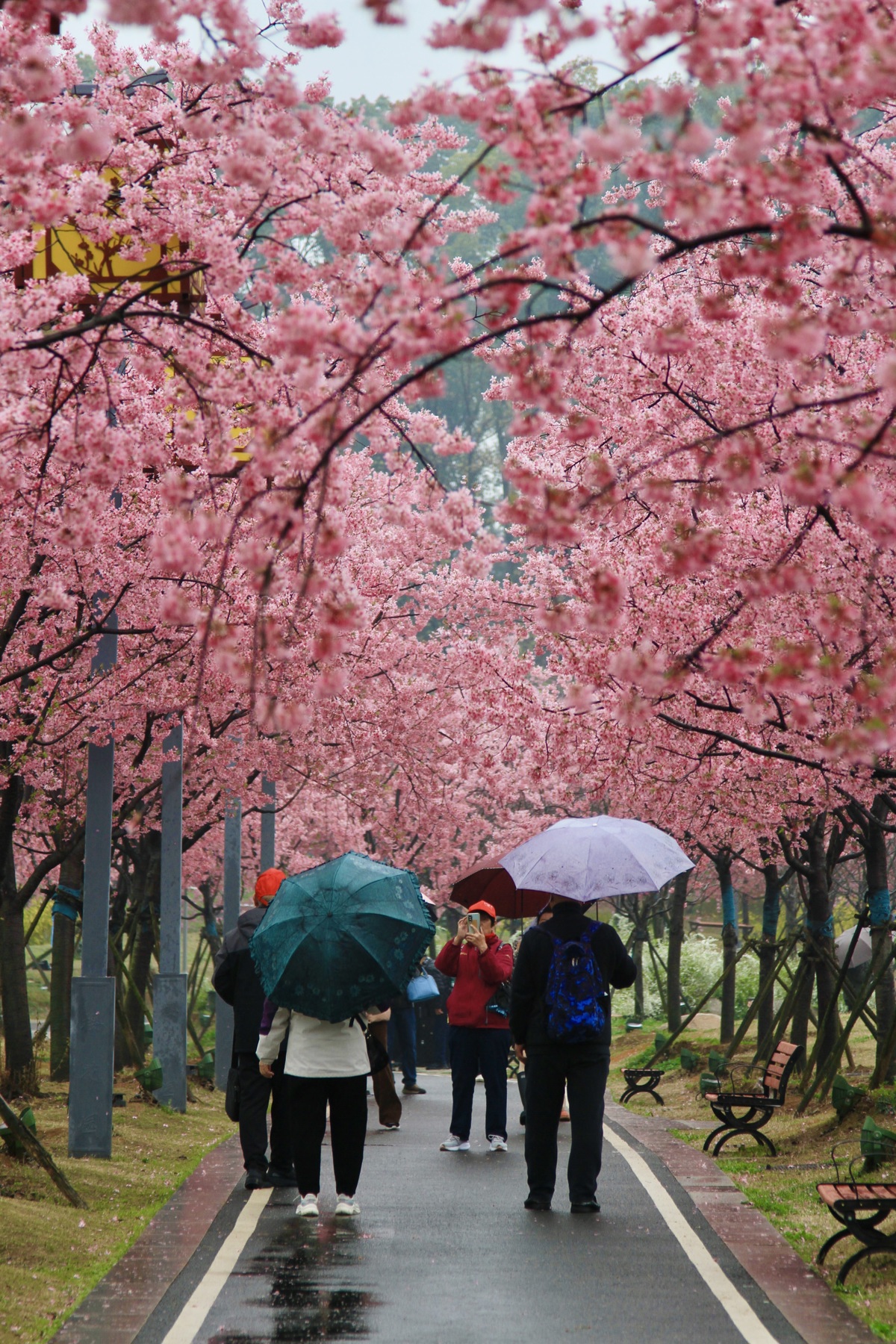 “来之前还担心风雨把樱花打落了,没想到过来一看,开得比想象中还好,雨水洗过之后更干净了。”来自上海的游客杨女士笑着说道,雨中赏樱的独特体验让她格外惊喜,“打伞漫步在亭台楼阁间,欣赏满园春色,这就是古人的春趣、顶级的中式浪漫。”据园区工作人员介绍,风雨过后,园内樱花整体长势良好,仅少量早樱花瓣自然飘落,并未出现大面积凋零的情况,观赏价值丝毫未减,中樱也开始冒出花骨朵,即将迎来绽放。
