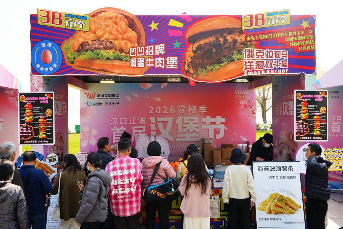 繁花相迎,惠风送暖。春日限定主题活动亦竞相登场,让赏樱之旅更添意趣。汉口江滩首届汉堡节于3月14日率先开街,汇聚潮流美食与社交场景,成为樱花季休闲打卡新地标;黄鹤楼公园以“樱漫黄鹤·诗满江城”为主题,打造樱花大道、国乐演出、夜游花朝盛典,NPC巡游带来不期而遇的惊喜;知音号码头“樱为知音”春日樱花季启幕,游客可登船赏江景、品樱花茶点,在百年江轮与春日繁花中定格江上春色;风貌木兰花谷推出赏花游园会、手工DIY等亲子活动。