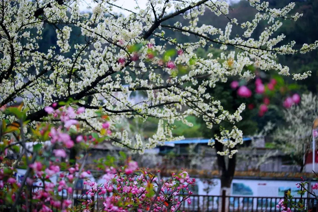 鸣翠谷的春天,是一座藏在山水间的天然花园。三月里,红梅、桃花、杏花、梨花、海棠等竞相绽放,粉色、红色的花朵缀满枝头,与山间的青山绿水相映成趣,漫步其间,一步一景,仿佛闯入了世外桃源,美不胜收。
