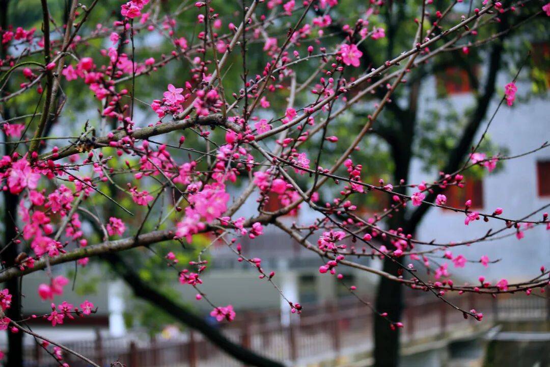 最佳花期:3月(红梅、桃花、杏花等),4月(晚樱、禾雀花等)