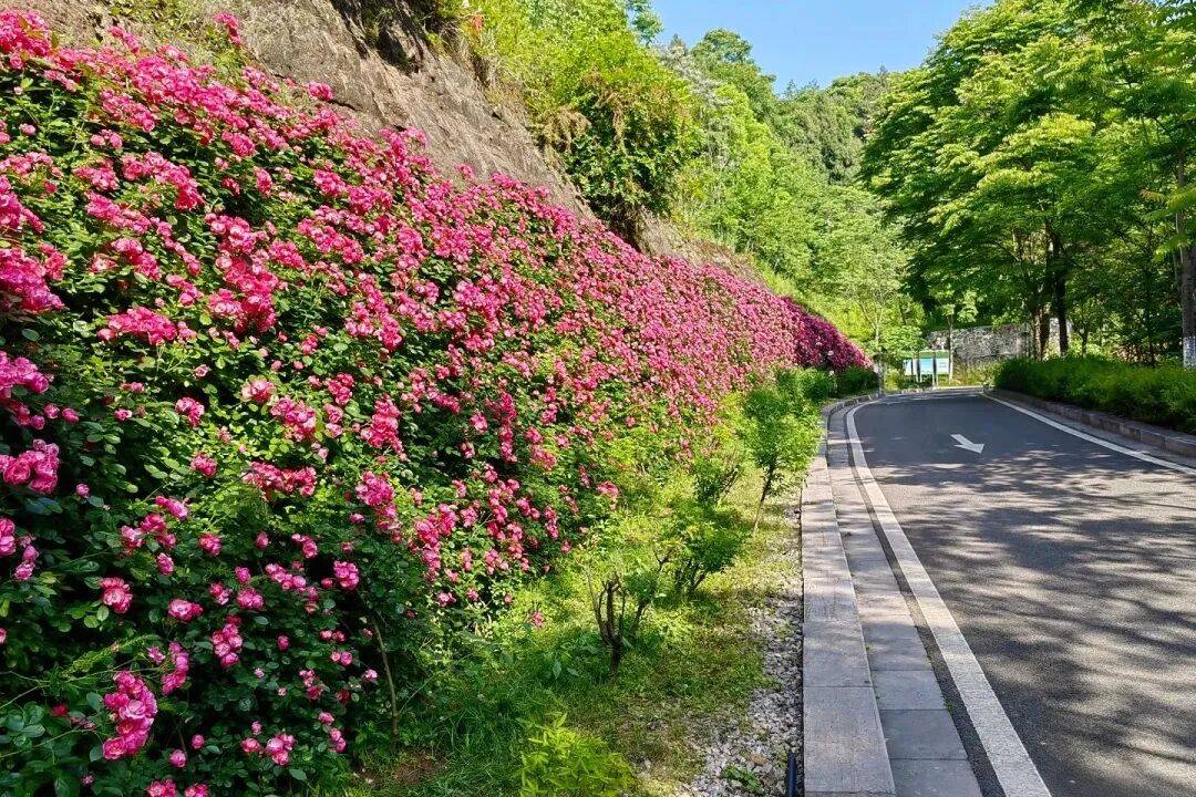 游玩小贴士:免费开放,建议游玩1.5小时;蔷薇主要分布在山间步道两侧及东部山谷周边,可顺路打卡;可登山远眺长江全景,赏完花还能在山间步道散步,呼吸新鲜空气。
