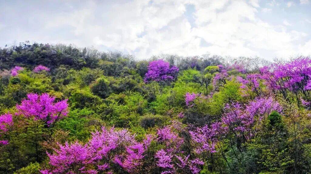 看漫山遍野的巨紫荆花海铺染山峦,形成华中地区罕见的生态景观,微风拂过,花海翻涌,仿佛置身于紫色仙境。这里不仅有美景,更有清新的山间空气,适合徒步爱好者和摄影爱好者前来打卡,感受大自然的神奇与馈赠。