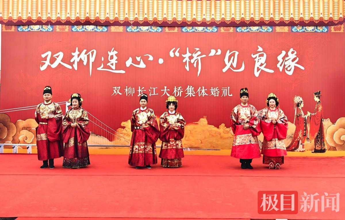 2026年3月18日上午,在即将通车的湖北双柳长江大桥上,一场别开生面的中式集体婚礼浪漫上演。三对来自大桥建设一线的新人,在巍巍桥塔与滔滔江水的见证下,身着中式传统婚服,行古礼、结同心,以“桥”为媒,许下相守一生的誓言。