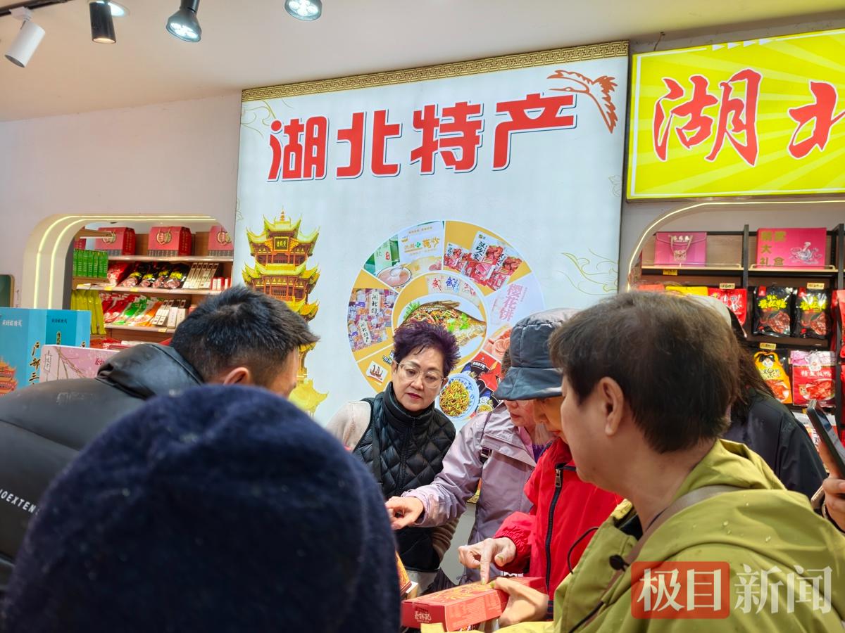“湖北的莲藕格外粉糯,熬出的汤醇厚鲜香,我一定要带些回去!”马来西亚游客王先生捧着莲藕汤碗赞不绝口,黄女士则对荆楚风情文创冰箱贴爱不释手,一口气选购多件准备赠予亲友,大家还纷纷采购热干面、孝感麻糖等特产,把荆楚味道与文化记忆一并打包。