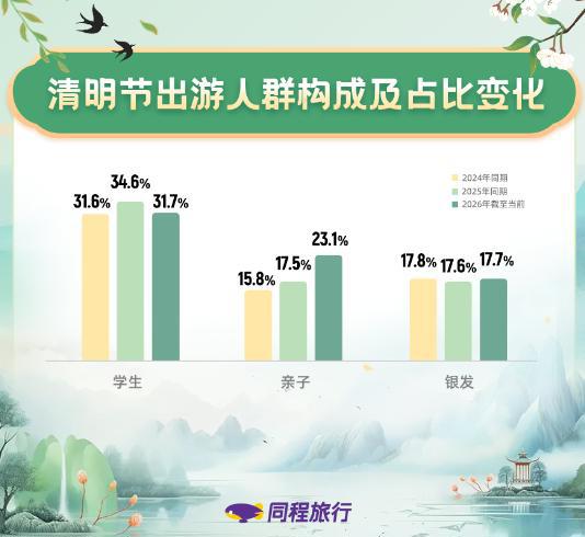 同程研究院认为,春假与清明假期形成6天连休,不仅有效释放了家庭亲子客群的中远程出游需求,更验证了“错峰休假+传统假期”组合模式对激活春日消费潜力的可行性,有望激发“教育+文旅”融合新场景,推动文旅供给端提质升级。