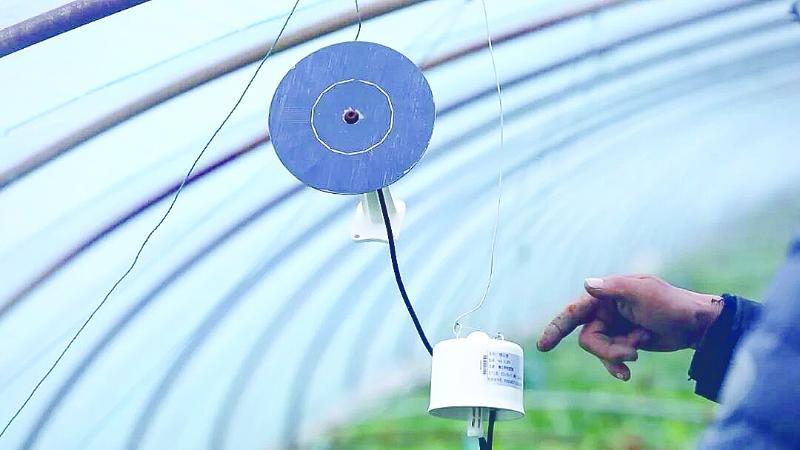 在和县历阳镇太平村芸胜蔬菜种植家庭农场大棚内,一张仅有手掌大小的圆形太阳能板,一个小圆柱器械,再加上一个插入土壤的检测器,就组成了一个实时监测温度、湿度、土壤、光照等多类种植数据的“神器”。“只需打开手机App,就能看到数据,再搭配物联网水肥一体化装备,远程也可控制施肥、浇水。”农场主王跃胜说。