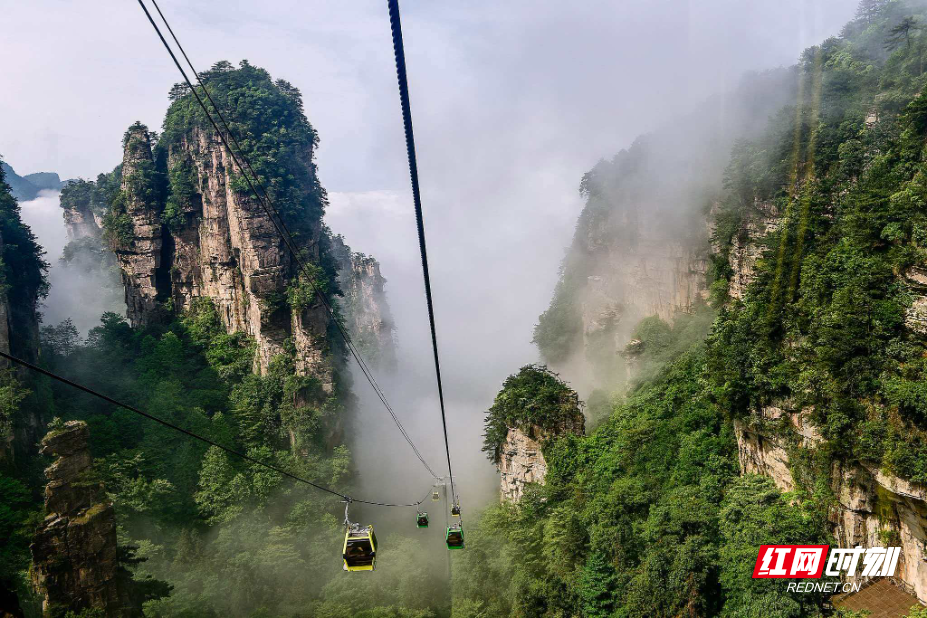 作为张家界国家森林公园的重要交通枢纽与观景平台,杨家界索道串联起了景区最精华的景观:这里的峰墙地貌是数亿年地质运动的杰作,条带状石峰如天然屏障般铺展向天际,是区别于黄石寨、天子山的独特景观;而春日云海更是将这份雄奇推向极致,云雾流转间,峰林若隐若现,宛如仙境。乘坐索道攀升,既能近距离感受峰墙的巍峨肌理,又能沉浸式体验云海漫过峰尖的诗意瞬间,这份独有的视觉体验,正是杨家界吸引八方来客的核心魅力。