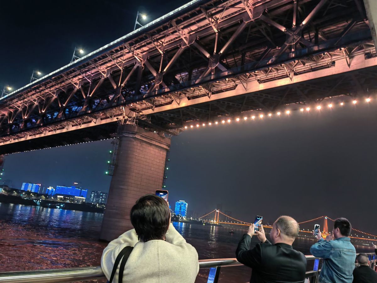 活动中,与会嘉宾登临龟山,逛三国主题市集,在知音殿现场体验沉浸式剧游《三国群芳宴》,与“张飞”对饮,赏“貂蝉”起舞,远眺蛇山之巅的“千年诗楼”黄鹤楼,饱览江城璀璨夜色,并乘游船畅游长江,在光影流动中感受武汉独特的山水人文交融之美。