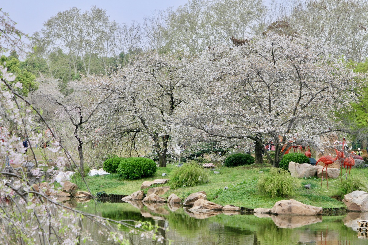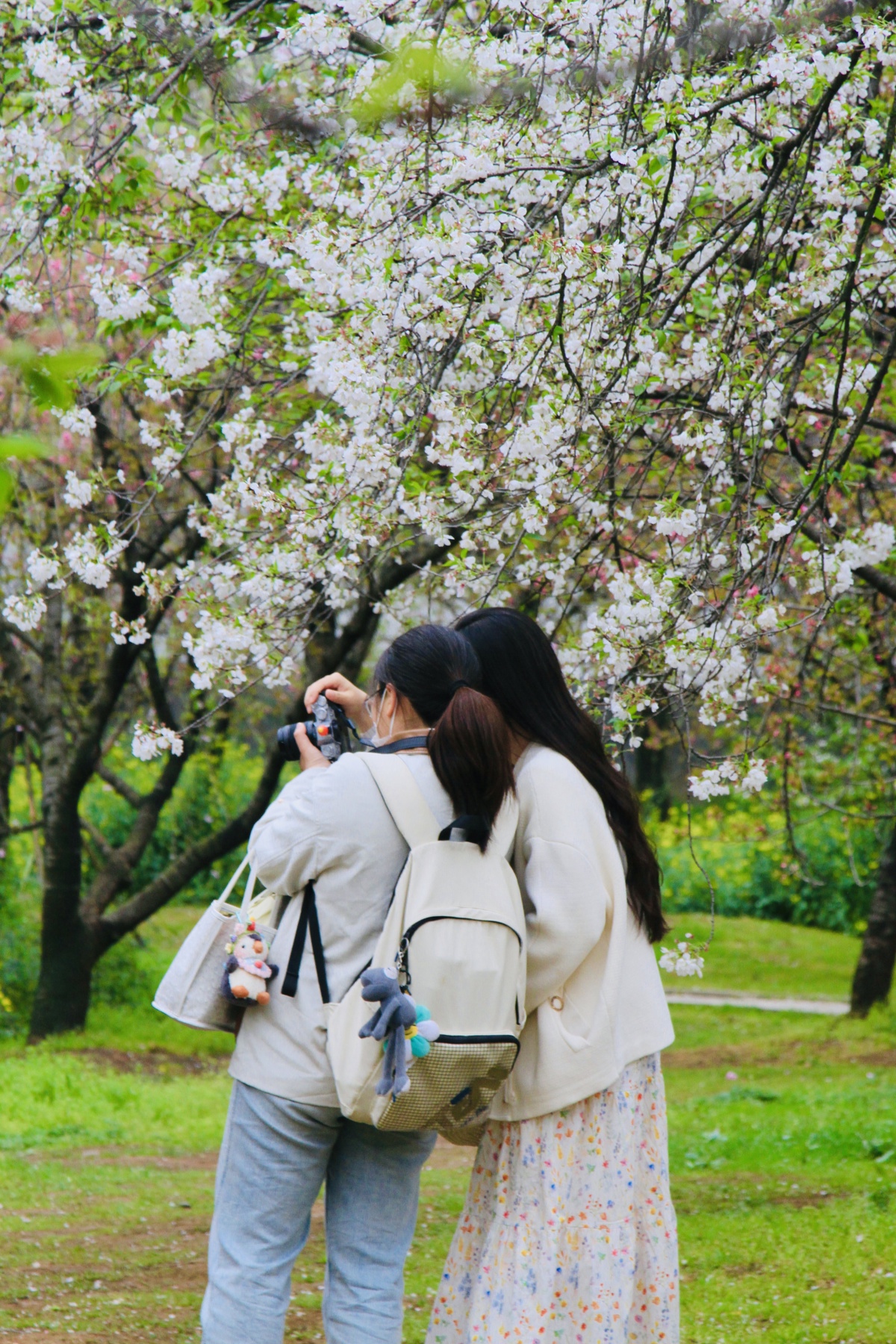漫步樱园,落英铺径、繁花满枝,游客或驻足拍照、或漫步花间,尽享春日盛景。景区持续优化服务,每日7时至22时开放,打造“日赏繁花、夜观灯影”的全时段赏樱体验,配套国风演艺、文创市集等活动,让游客沉浸式感受东湖樱韵之美。