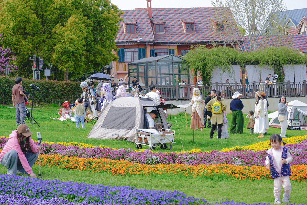春日的花博汇,千亩花海浪漫绽放,郁金香、虞美人、二月兰、角堇等花卉竞相开放,构筑起沉浸式赏花秘境,花海与观光火车、城堡、钟楼等特色景观相映成趣,成为游客踏青赏花的好去处。为丰富游玩体验,景区全新上线《十二花神令》沉浸式互动项目,花神NPC遍布园区,带来投壶、分茶、智趣问答等十余项趣味玩法,游客闯关收集“花币”可兑换门票、住宿等福利。同时,《花海乐队》《萌马见面会》《古楼招亲》等百场演艺全天轮番上演,非遗绝活、古风表演、童趣互动全覆盖,精准满足全年龄段游客游玩需求。