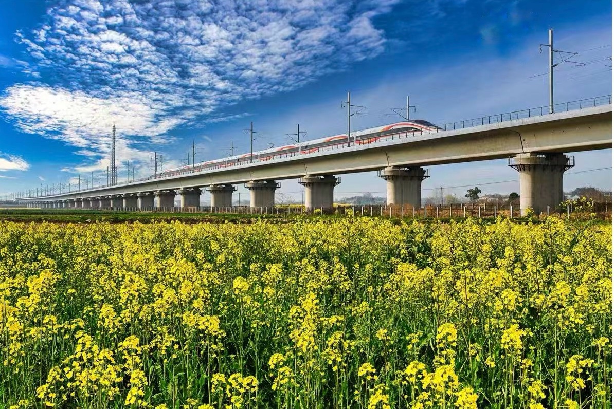 高铁掠过油菜花田 陈智勇 摄