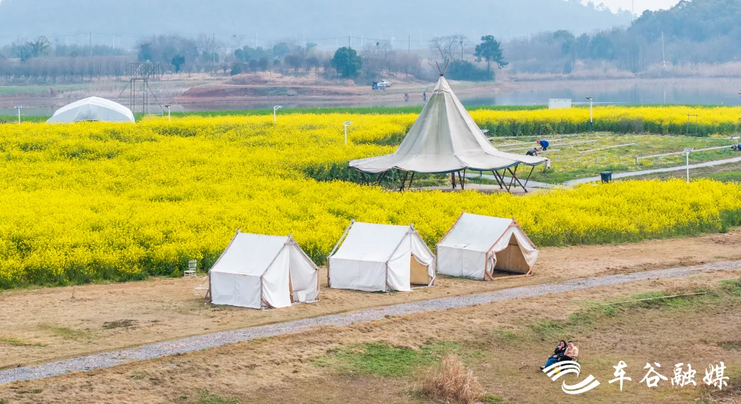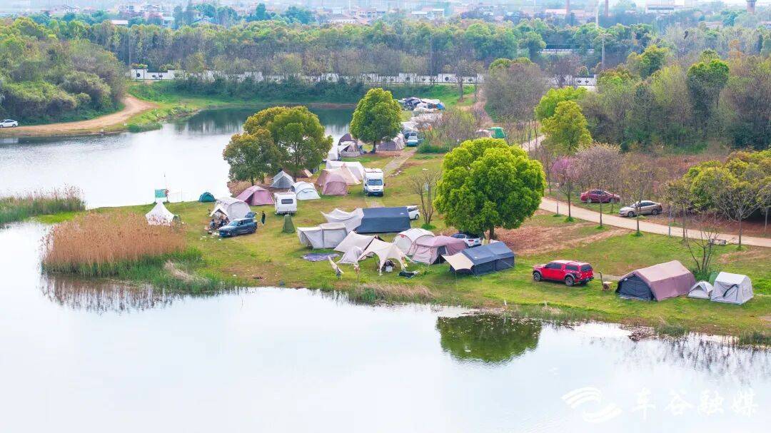 刚在诸葛城的青砖黛瓦间感受三国文化,转身就可以来到“藏”在诸葛城旁边的武汉露营胜地:牛尾湖。这里湖岸线开阔,草坪连绵,在开阔草坪搭起帐篷,等一场湖畔落日,感受“一半诗意一半烟火”的春日慢生活。