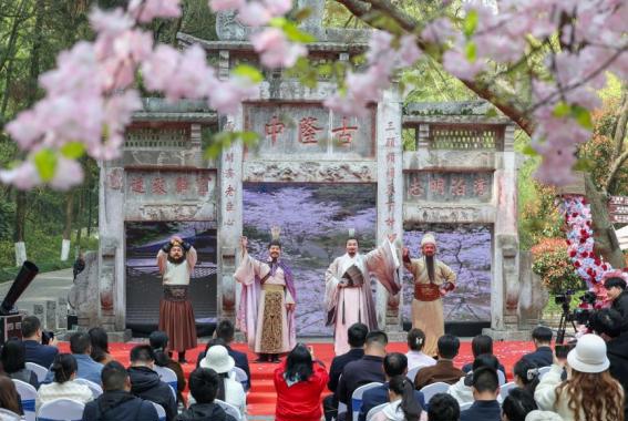 在古隆中景区,游客边游览边欣赏全场景三国NPC巡演,体验“隆中春宴”融合飞花令、古琴茶艺与三国宴饮礼仪,沉浸式感受诸葛文化与春日雅集。
