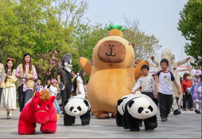 华侨城奇幻度假区奇幻谷景区推出“AI动物奇幻秀”、网红互动、真人剧等新潮玩法;黄家湾、春秋寨等景区推出汉服免票、古风游戏、非遗手作、门票五折等福利,吸引大量亲子、年轻游客打卡。