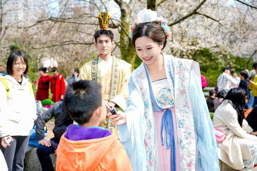 春日来临,长沙望月公园紫玉兰亭亭玉立、粉樱漫山绽放、杜鹃热烈盛放,不少游客身穿汉服在花海中拍照打卡。今年,望月公园依托西汉长沙王吴著墓的历史底蕴,推出汉风市集、汉文化科普研学等系列沉浸式活动,并联动周边商圈开展扫码领礼、任务兑换、消费引流等举措,有效拉动周边消费增长。