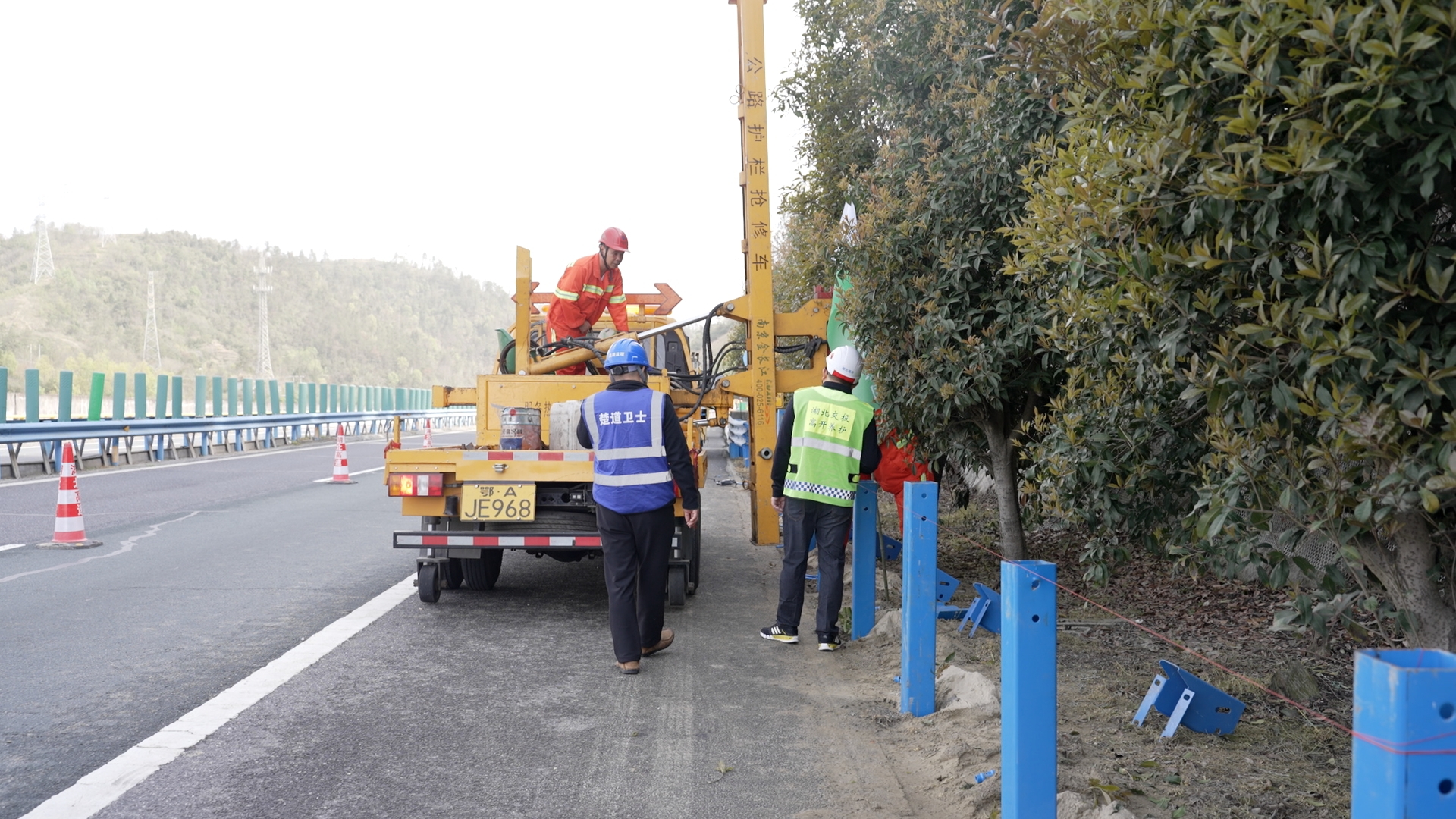 此次先期开工点聚焦茅坪互通路堑波形护栏增设、高坪特大桥桥墩抗冲刷防护。项目团队同步推进施工图深化、现场踏勘、资源统筹等前期准备工作,各参建单位迅速完成驻地搭建、人员到岗、机械设备进场、物资储备等开工准备。在保障高速公路正常通行的前提下,施工有序推进,目前已全面进入常态化施工阶段。