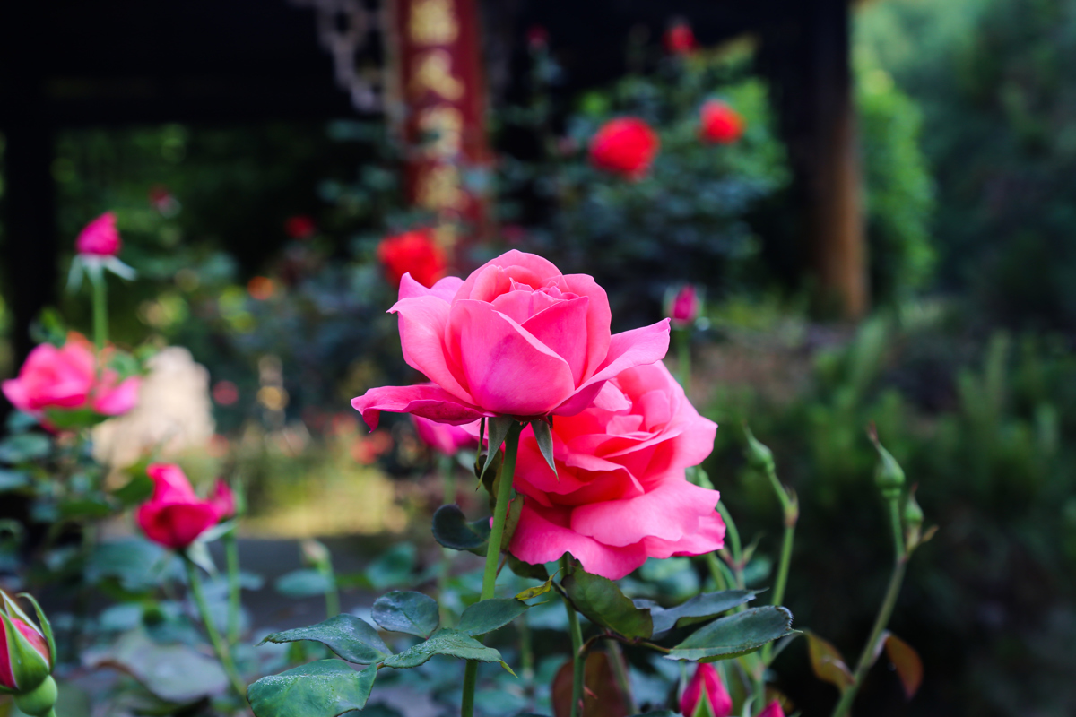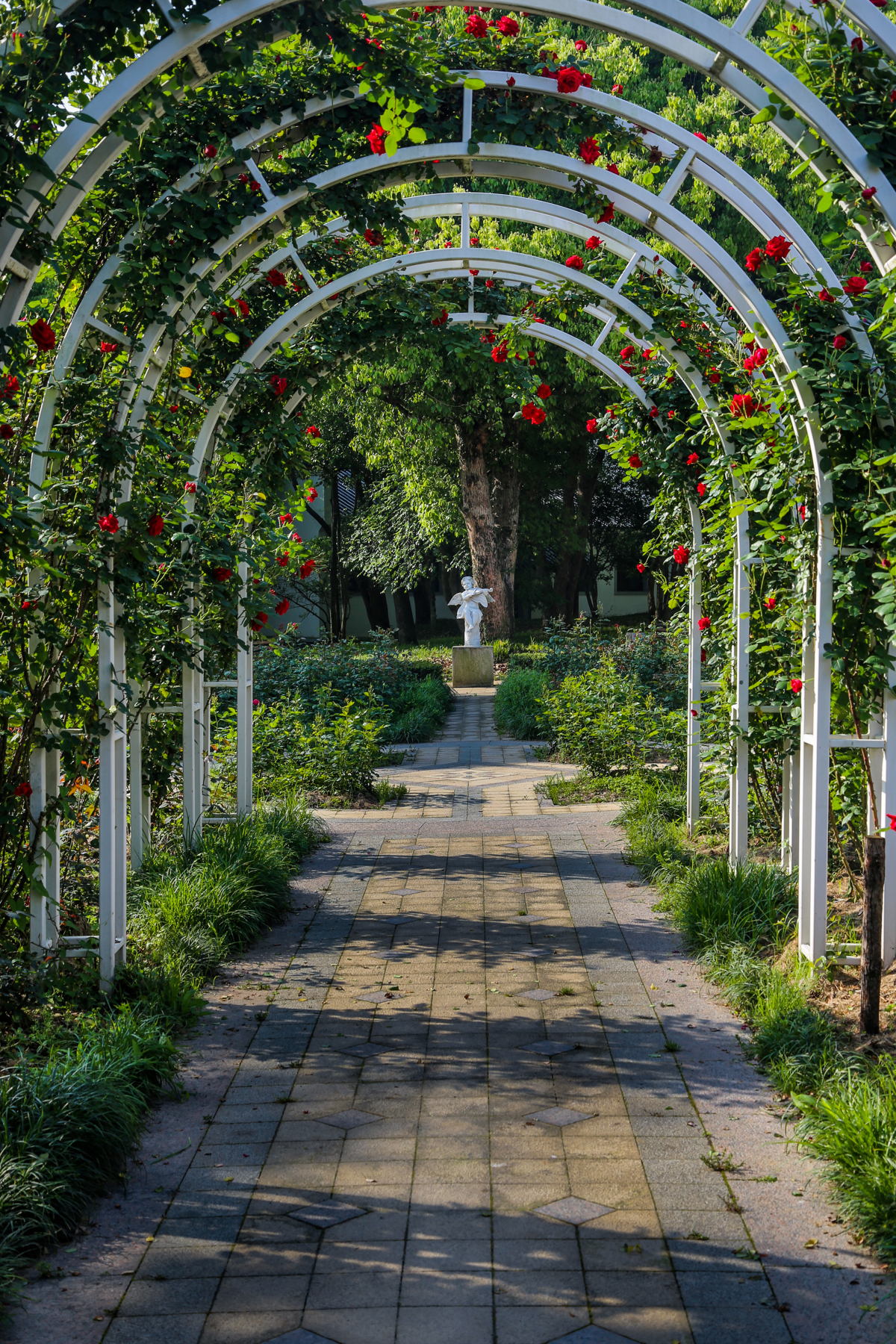 园内景观独具匠心,实现了中西美学的完美交融。造型精致的西式玫瑰花亭典雅浪漫,充满欧式风情;古韵悠长的中式玫瑰长廊曲径通幽,尽显东方雅致。一步一景,步步皆诗,行走其间,既能沉醉于无边花海,又能感受不同风格建筑的独特韵味。与此同时,园区还融入玫瑰科普展示,让游客在打卡拍照、沉浸式赏花的同时,了解玫瑰品种、生长习性、培育知识等内容,真正实现休闲游玩与科普研学两不误。