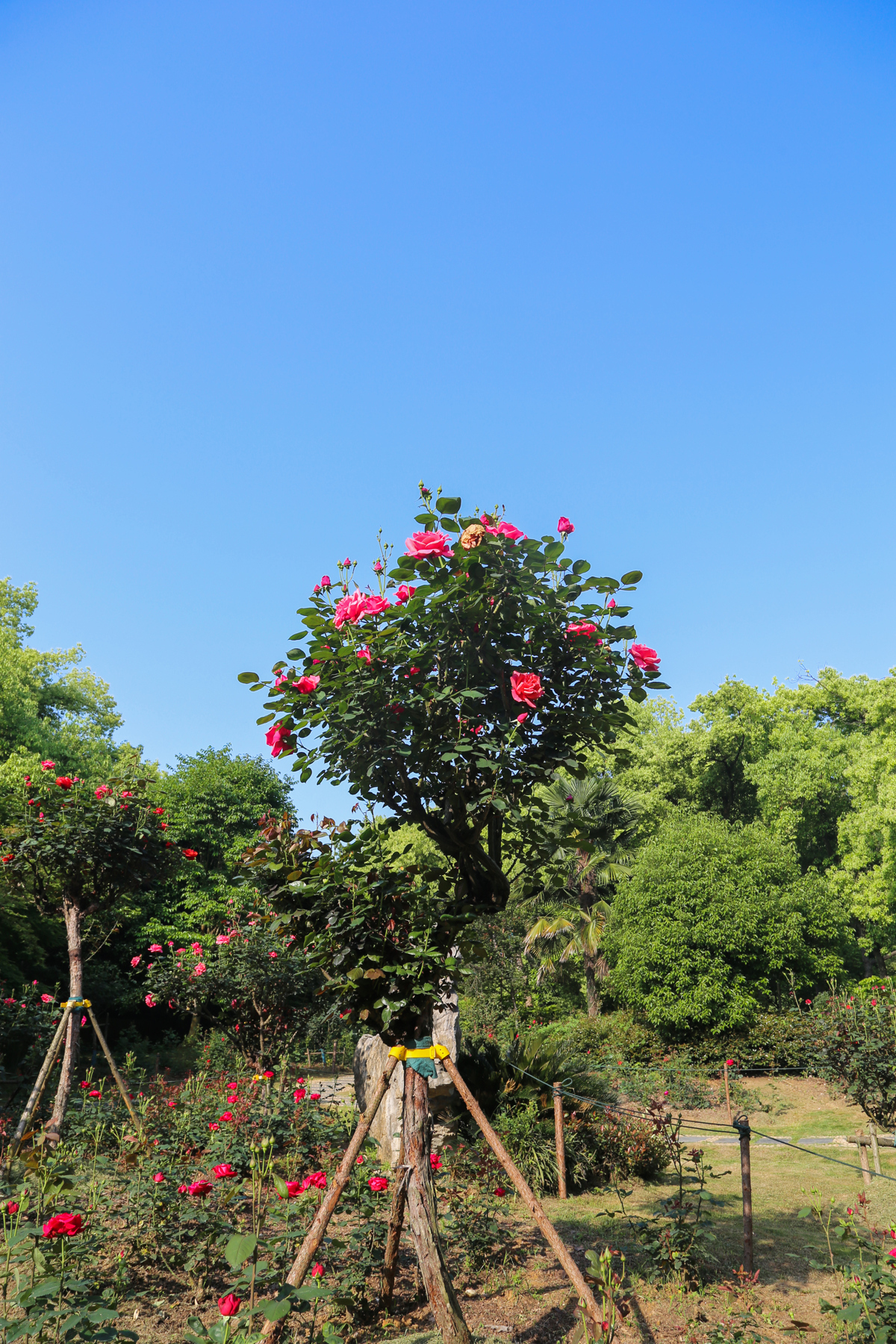作为湖北首家玫瑰主题精致花园,同时也是东湖片区规模最大的玫瑰园,这片占地12000平方米的“花花世界”自2013年分三期打造完成,多年来精心培育、匠心布局,园内共栽种3万余株玫瑰、月季,涵盖18个优质品种。园区以树形挺拔、花势大气的大型树状月季为核心景观,搭配纯白玫瑰、粉艳玫瑰、大花月季等经典品种,花朵圆润饱满,花瓣层层叠叠、错落有致,色彩鲜亮浓郁、质感高级,无论是近观花姿,还是远赏花海,都极具视觉冲击力,随手定格都是氛围感满满的文艺大片,观赏性拉满。
