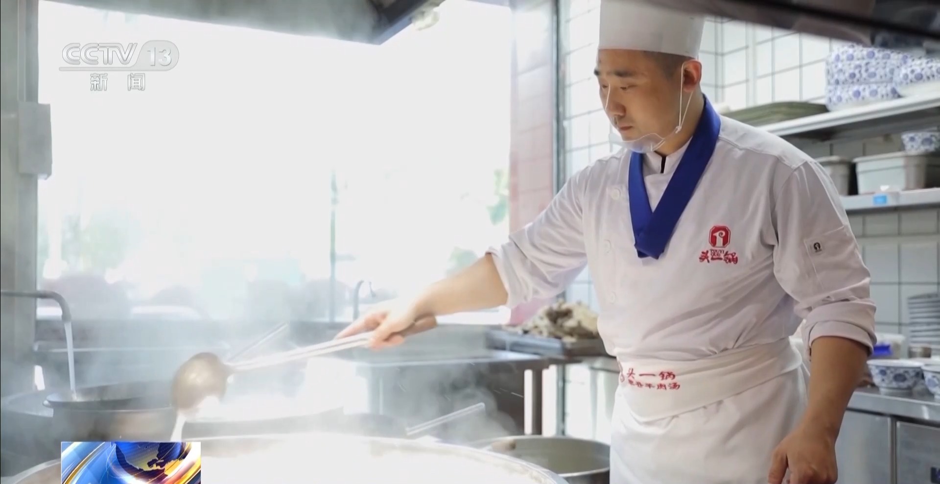 早上七八点钟,羊肉汤馆内的大锅已经升腾起热气,乳白色的汤翻滚着,鲜香味扑面而来。