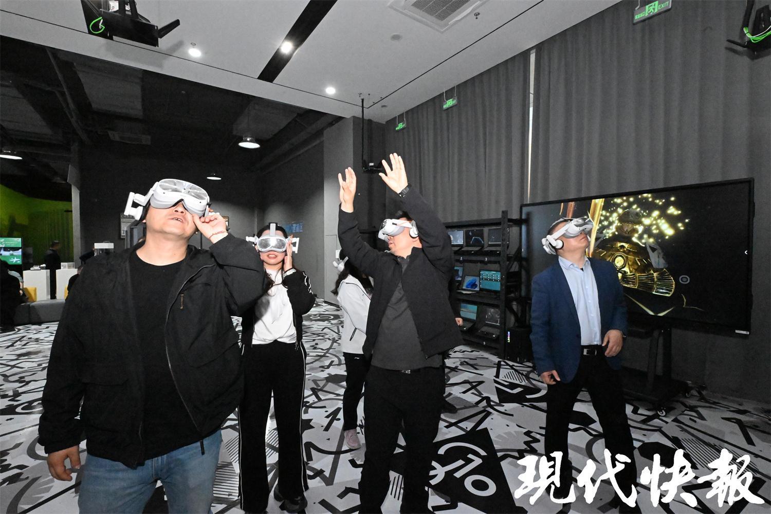 4月25日下午,由盐城市委宣传部、现代快报社共同组织的“向海图强、向绿而兴、向新转型”2026年全国重点媒体盐城行活动来到盐南高新区,走进这座“数字造梦工厂”,在数字视听和AI体验空间里,亲身感受数字科技带来的沉浸式震撼。