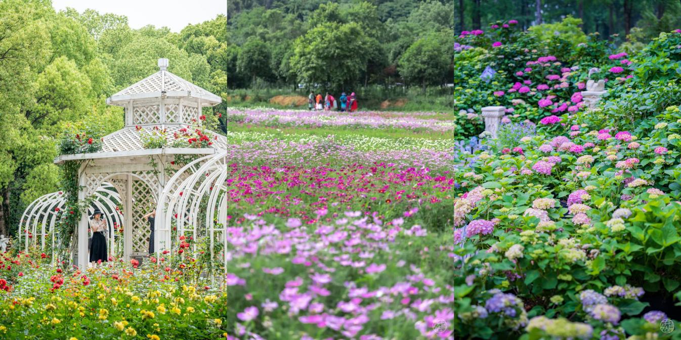 落雁景区玫瑰园内,12000㎡生态空间,3万余株玫瑰与月季扎根生长,大花、藤本、丰花等18款特色月季品种各有风姿,中式白廊的婉约与西式花亭的浪漫融为一体,尽显自然与园艺的浪漫匠心。吹笛景区(马鞍山森林公园)的“梦花源”中,波斯菊花海已悄然绽放,随手一拍都是清新治愈的大片,尽显自然野趣。在中科院武汉植物园,绿野花田、花境大道、景观温室处,大花绣球展打造出绚烂的“大地艺术”景观,并配套漆扇手绘、套色绣球印章等互动体验,游客可亲手制作专属文创产品,带走一份春日的记忆。