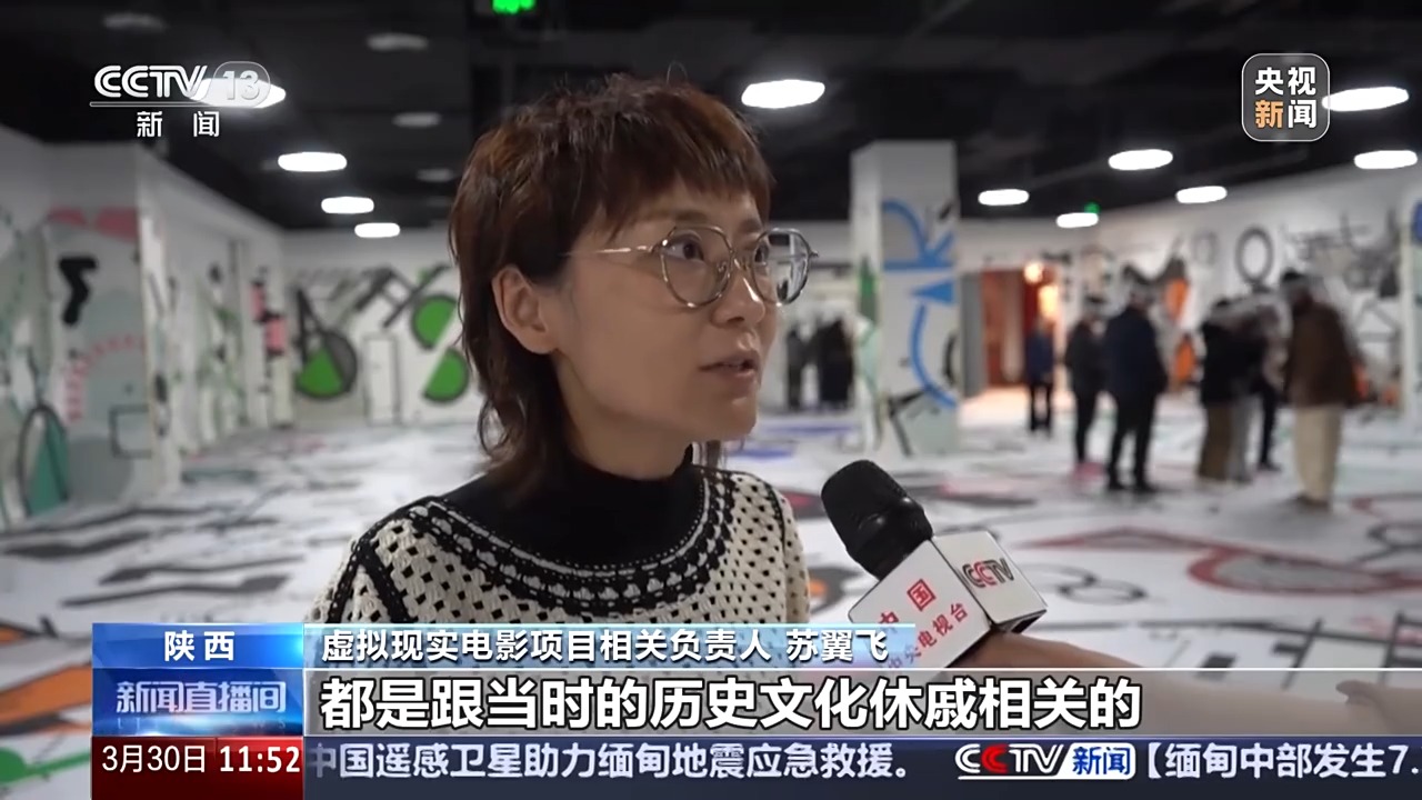 虚拟现实电影项目相关负责人苏翼飞:当你戴上眼镜的一瞬间,你就会穿越到我们影片所表达的那个年代。每一块砖、每一片瓦都是跟当时的历史文化休戚相关的。“文化+科技”才会是最有力量的新质文化生产力的表达方式。