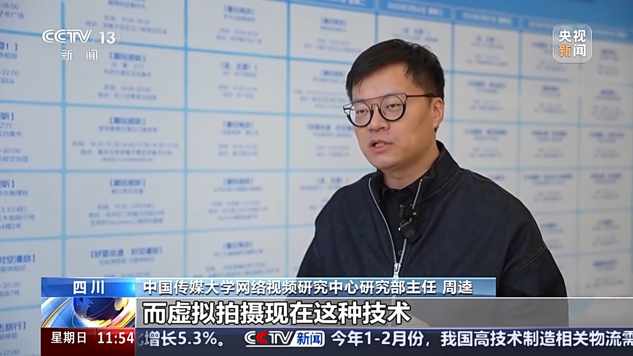 中国传媒大学网络视频研究中心研究部主任周逵:以前可能会即便有一个好的想法,那么很可能就因为比如说这个制片各方面的限制,它没办法那么好落地,而虚拟现实虚拟拍摄现在这种技术可以将周期变得更短,那么对于公司来讲的话,它可能缩短周期对他们来讲就是节约成本。