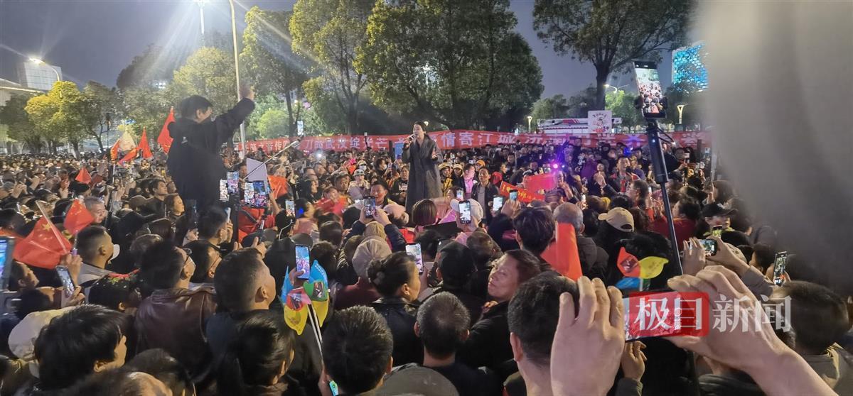 3月30日的武汉沌口体育中心游泳馆外,跟前一天一样,数以万计的刀郎歌迷聚集在这里,唱着《我们走在大路上》,抒发自己的热情。