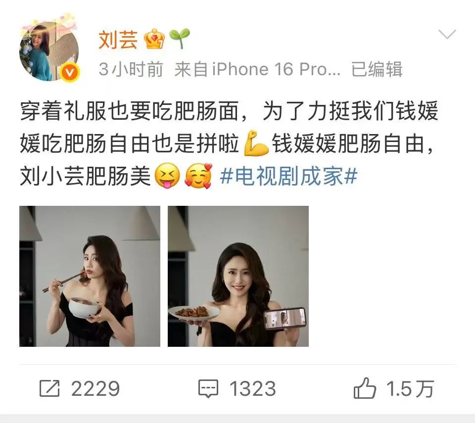 本以为这样的好身材,女明星都得饿着才行,没想到刘芸发文:穿着礼服也要吃肥肠面!