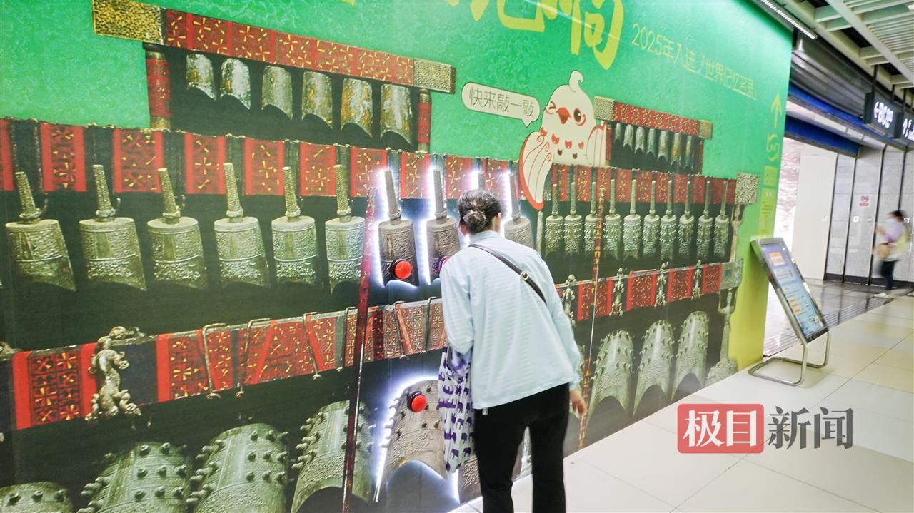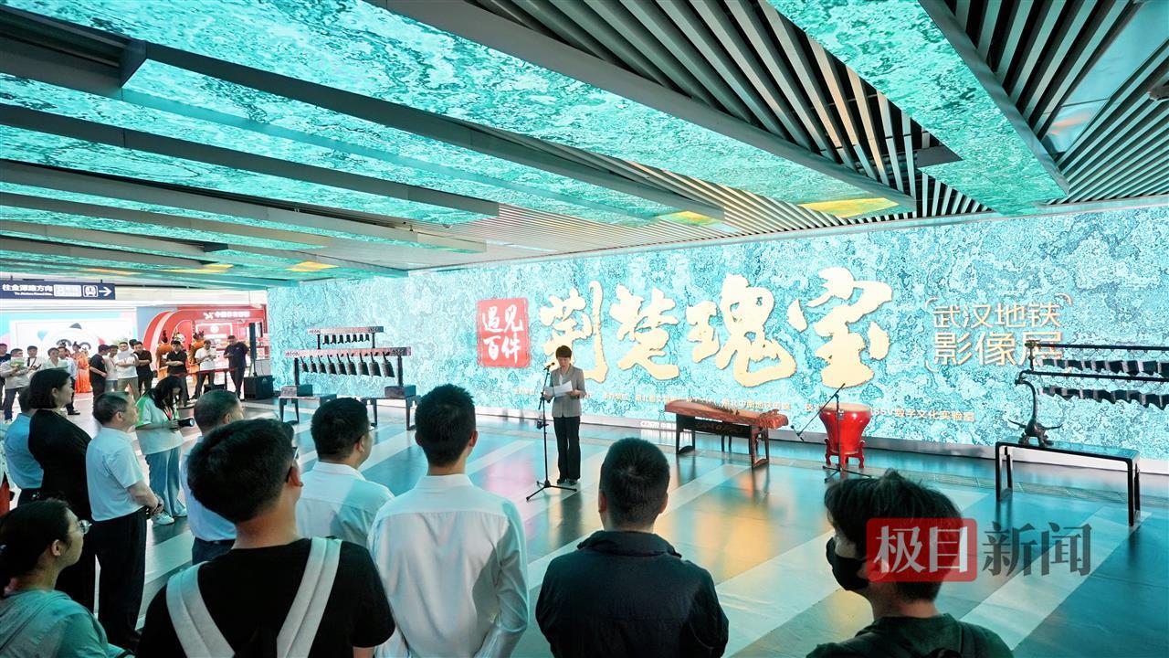 该站厅换乘品牌社区内,更是别有洞天。百件荆楚瑰宝的高清影像精心排列,构成了一条长达百米的数字文化长廊。每一件文物旁都贴心设置了“荆楚瑰宝”文博码,观众只需拿出手机轻轻一扫,即可进入线上展厅,获取文物的3D高清扫描图片、AI音频讲解以及精彩视频资料,仿佛瞬间穿越时空,与文物展开一场跨越千年的对话,沉浸式体验“一码穿越千年”的奇妙感受,极大地增强了展览的互动性与趣味性。