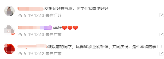5月19日中午,刘嘉玲晒了与老师、同学的合影。配文:苏州和老师同学们欢度我们的六十生日,祝大家健康快乐!