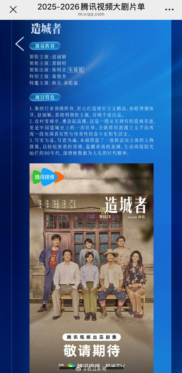 刚刚,在第30届上海电视节首日举行年度2025影视年度发布的腾讯视频公布大剧片单。