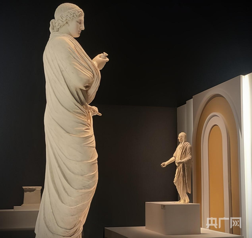 《女性雕像》与《身着托加袍的男子雕像》(央广网发罗煌阳摄)