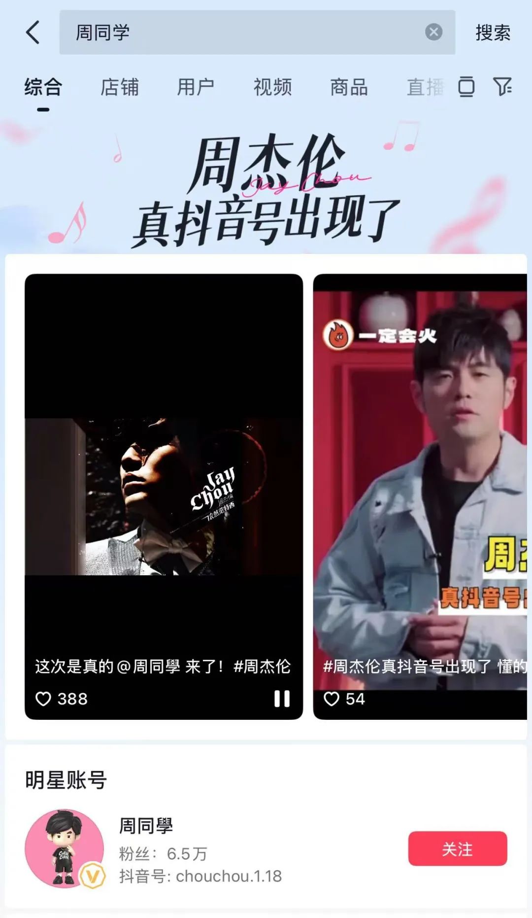 7月9日,歌手周杰伦正式入驻抖音,开通了他第二个中文社交媒体账号,取名“周同學”,头像是他的玩偶形象。