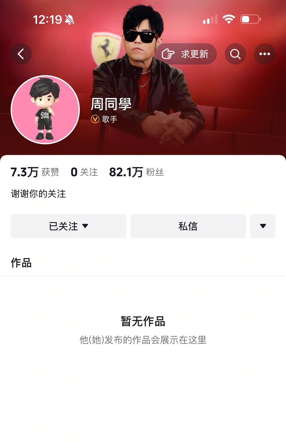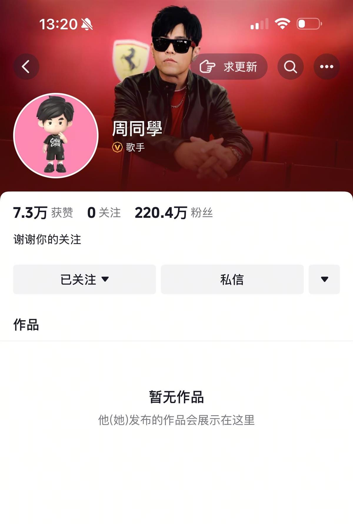 7月9日,有网友发现,歌手周杰伦正式入驻抖音,开通了他第二个中文社交媒体账号。新闻记者搜索发现,该账户名称为“周同學”,头像是周杰伦的玩偶形象,认证身份为歌手。