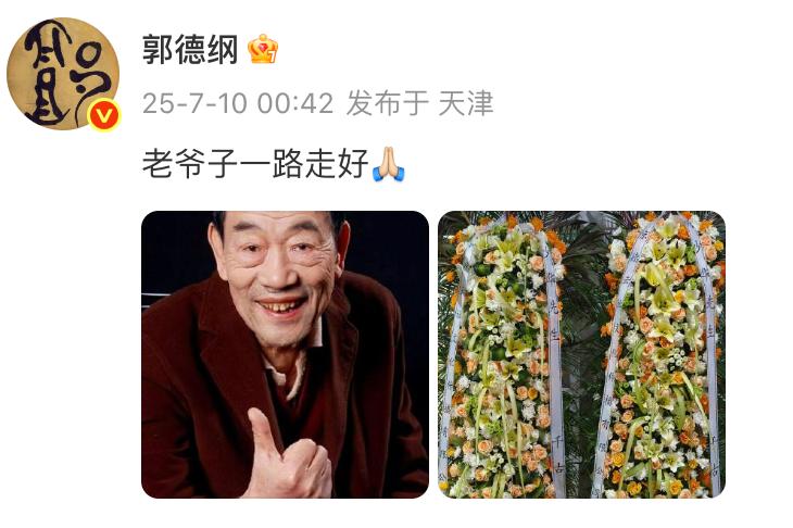 7月10日,郭德纲发文悼念杨少华:老爷子一路走好。