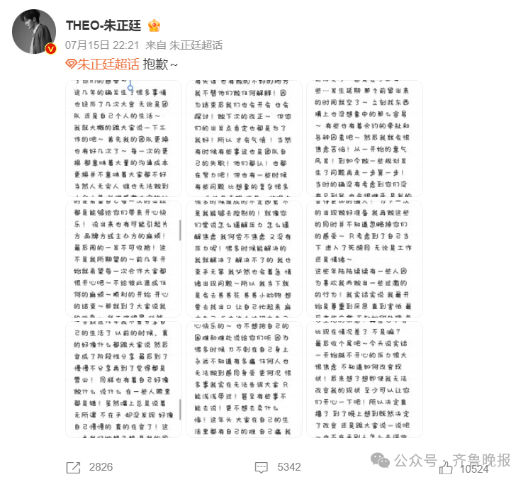 稍晚,他在超话给粉丝写长信道歉,他称已经换了好几次团队,也理解粉丝对团队有些气愤:“他们都认,也都在努力”;出现一些不可控的情况时自己也会焦虑、情绪出现问题,所以一直在空白的时间里充实自己。