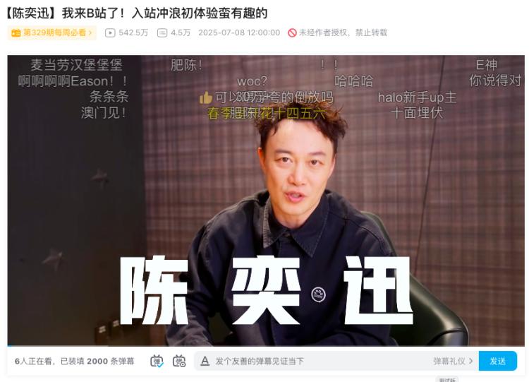 纪录片将于8月23日正式上线B站,当晚20点陈奕迅本人也将在B站独家进行纪录片线上直播弹幕陪看。截至发稿时,B站线上直播预约观看人数超过8万。