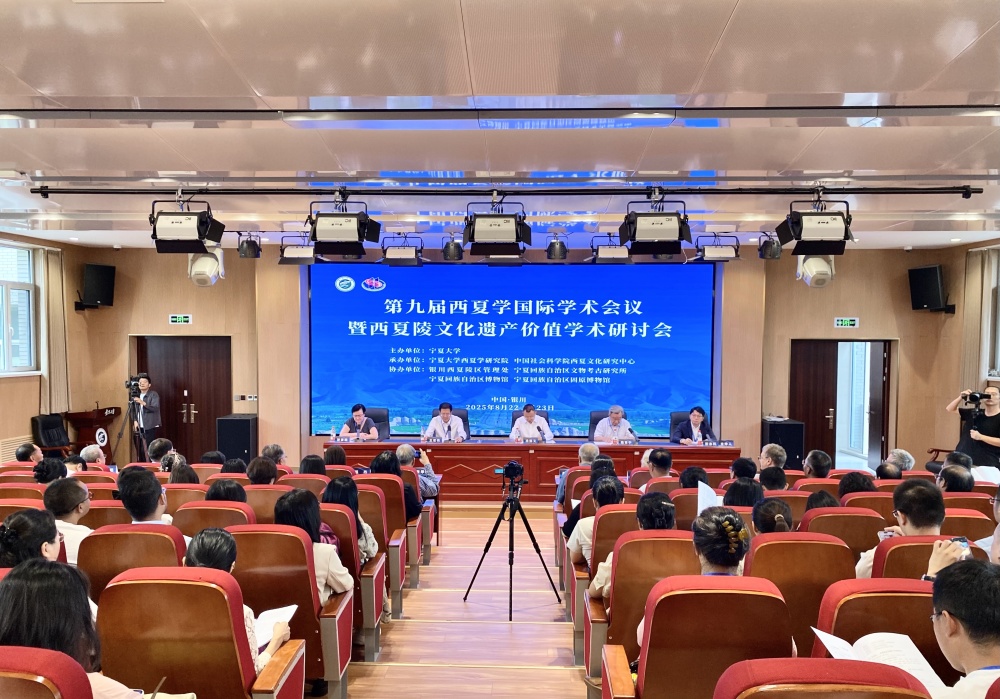 8月22日拍摄的第九届西夏学国际学术会议暨西夏陵文化遗产价值学术研讨会开幕式现场。新华社发