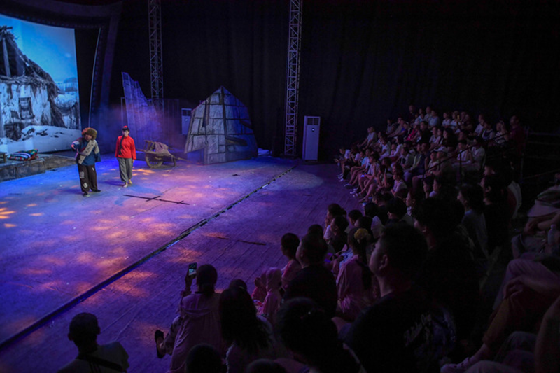8月7日,游客在长影旧址博物馆观看电影歌舞剧《白毛女》。 新华社记者 张楠 摄