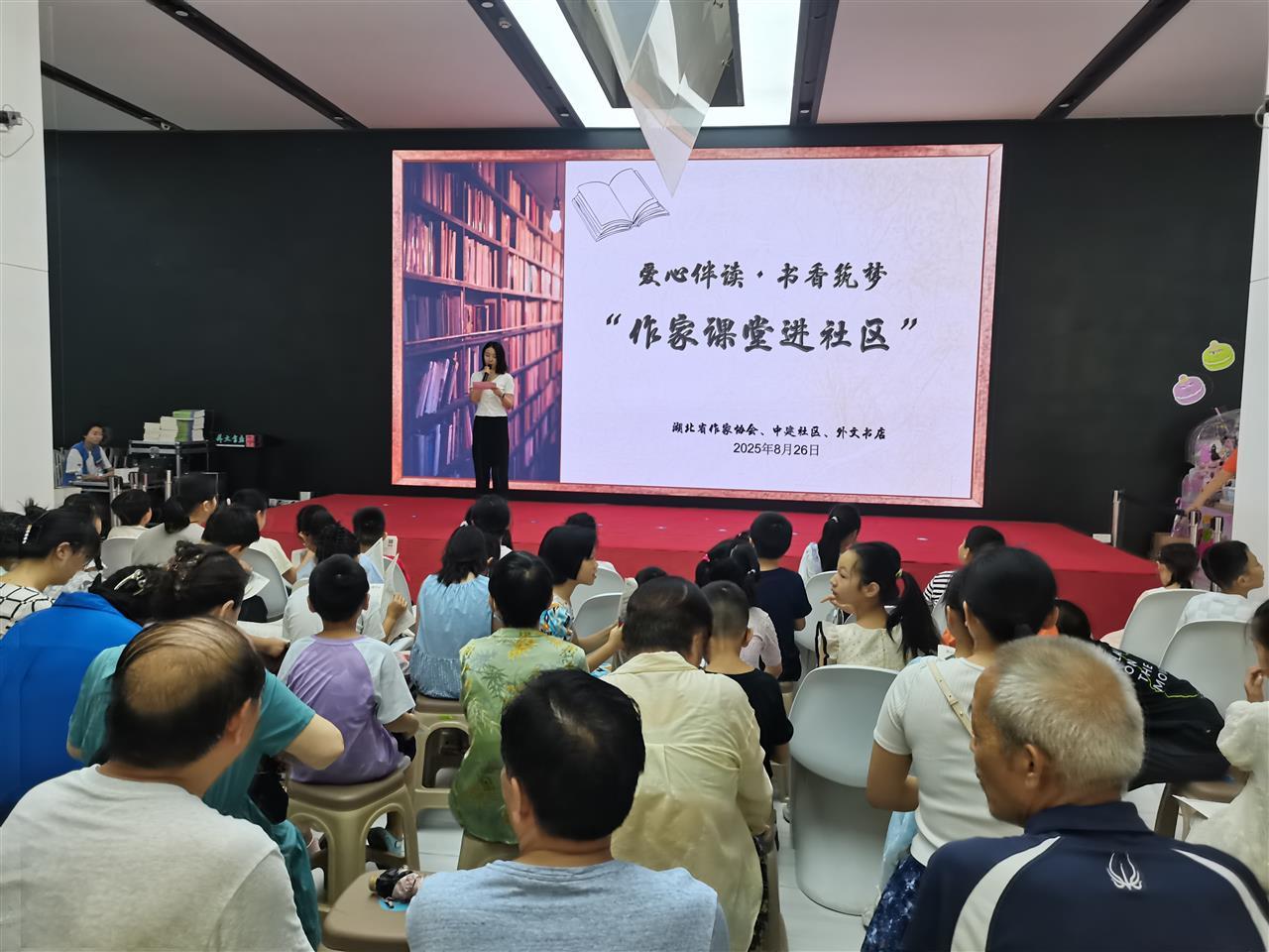 8月15日上午,由中共湖北省作家协会机关党委和湖北省作家协会工会妇委会共同组织的“爱心伴读·书香筑梦”——省作协“作家课堂进社区”爱心妈妈活动,在位于武昌区中南路的省外文书店一楼举行。来自武昌中建社区的中小学生及家长,以及社区工作人员、省作协“爱心妈妈”团队代表一起参加活动,现场气氛热烈。本次活动旨在发挥文学滋养和爱心陪伴的力量,为社区青少年提供优质的精神食粮和情感支持,营造热爱阅读的良好氛围,助力孩子们健康成长,为社区文化生活赋能。