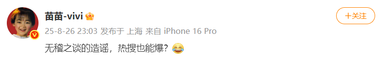 苗苗发文称“无稽之谈的造谣,热搜也能爆?”