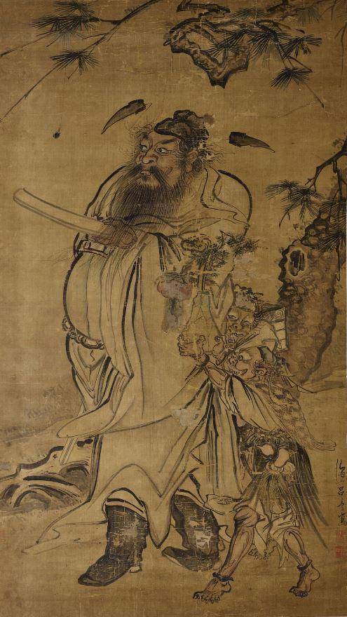 “钟馗”之名最早出现于何时?从现存文献中查找可知,在晋末至刘宋时期写成的《太上洞渊神咒经》卷七中就出现了“钟馗”之名。“何鬼来病主人,主人今危厄,太上遣力士赤卒,煞鬼之众万亿,孔子执刀,武王缚之,钟馗打煞,得便付之辟邪。”从这则史料看,钟馗此时已成道教神灵。