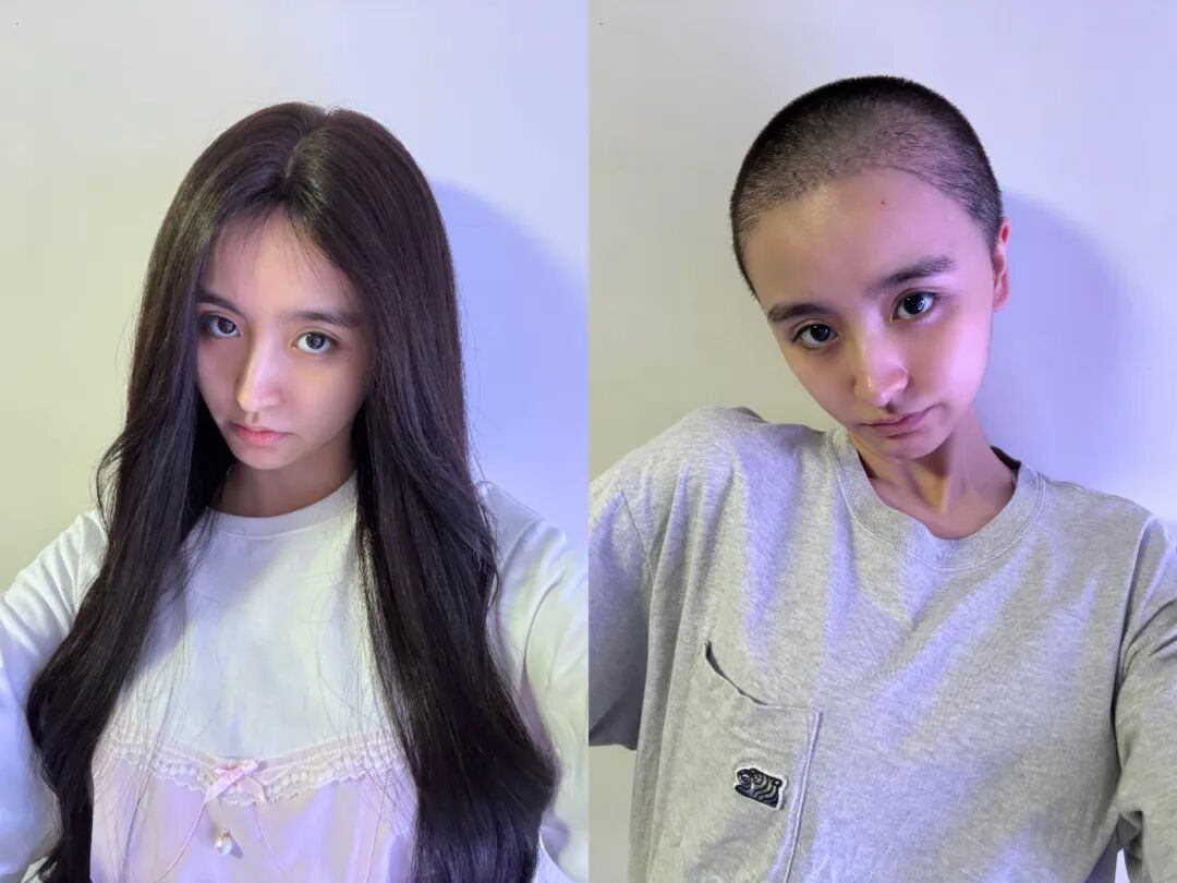 金子涵戴假发(左)和寸头(右) 图据金子涵小红书