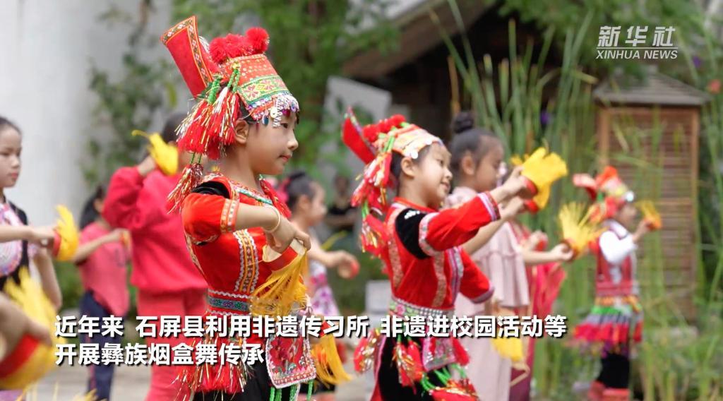 它起源于彝族先民的生产生活,在石屏县民间广泛流传,深受喜爱。石屏县利用非遗传习所、非遗进校园活动等开展彝族烟盒舞传承。