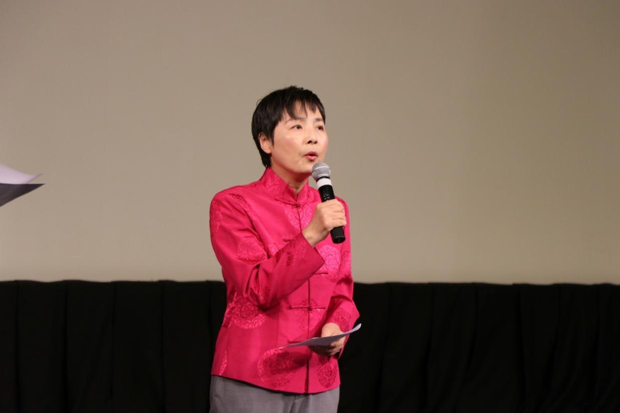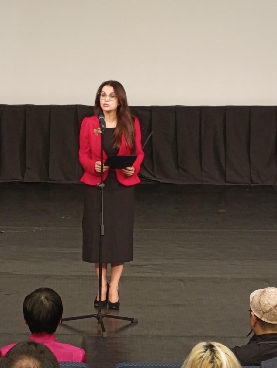 △保加利亚议员基萝娃女士在观影前发表致辞